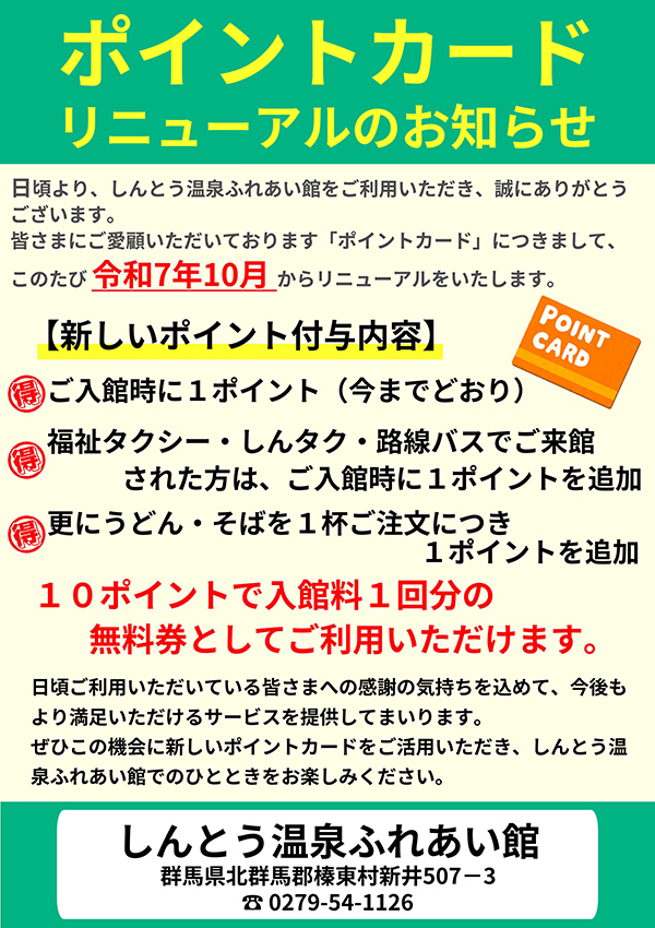 | 施 設 | 大浴場・露天風呂・ジェットバス・大広間(88畳)・中広間(36畳) ・ふれあいの滝・グラウンドゴルフ場・駐車場100台(ほか身障者用4台) |